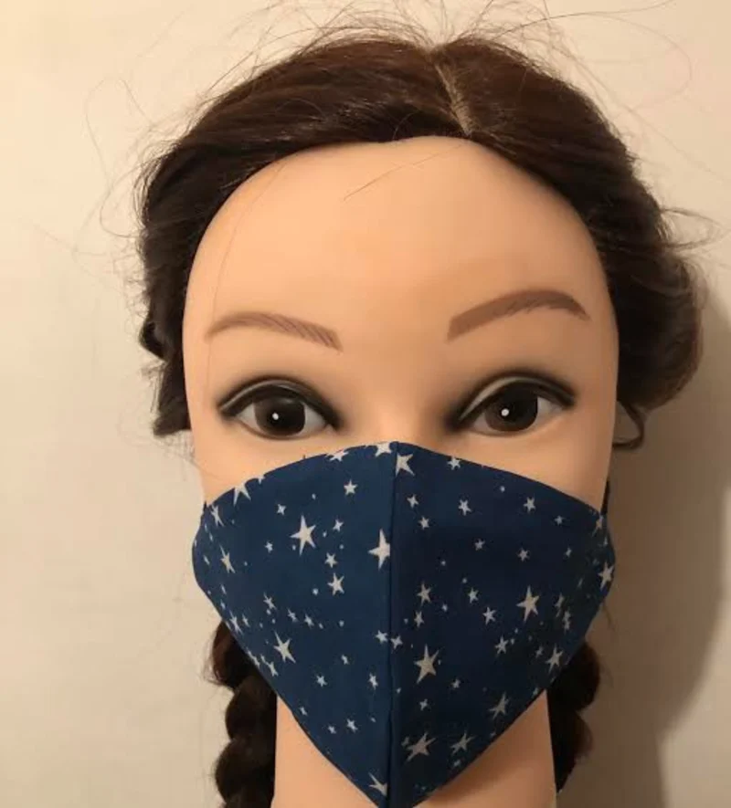 Reusable washable 100% cotton face mask with soft elastic.